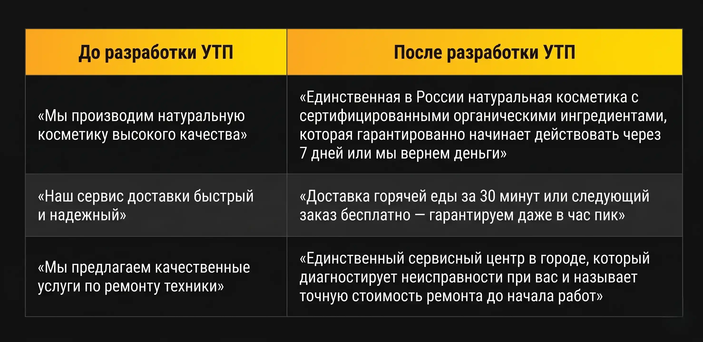 Ключевые характеристики эффективного УТП: